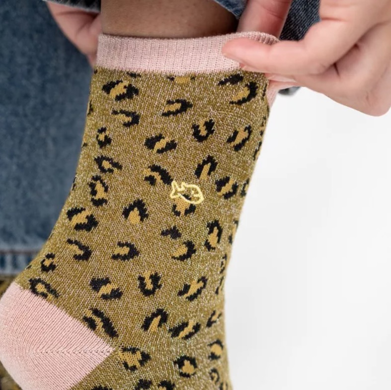 Apportez une touche d’originalité à votre tenue avec ces chaussettes pailletées léopard.