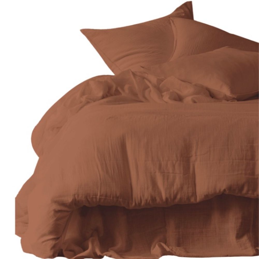 Très bel ensemble en double gaze de coton de percale lavé, dans le coloris Mocaccino.