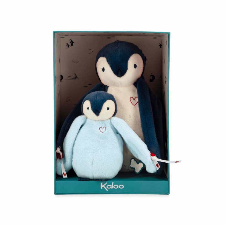 Petit et grand manchot sont (presque) inséparables ! Adaptées dès la naissance, ces peluches manchots ont été conçues pour réconforter et rassurer bébé dans les moments de séparation. Douces et moelleuses, ces peluches bleues représentent un parent et son petit, ainsi que le lien si particulier qui les unit. Les ailes du plus grand manchot sont très agréables à câliner et enveloppent le bébé manchot pour le garder tout contre lui. Les rubans ornés d’un petit cœur et présents aux extrémités des ailes permettent de lier les peluches : ils symbolisent la protection et le lien d’attachement entre un parent et son enfant. Cadeau de naissance idéal, ce duo de peluches Kaloo permet de rassurer bébé lorsqu’il est angoissé en l’absence de ses parents. Jolis cœurs et gros câlins sont représentés, pour expliquer aux tout-petits que le lien spécial qui les unit à leur parent est fort et ne disparait pas lorsqu’ils ne sont pas présents avec eux. Pour inviter aux câlins et stimuler les sens de bébé, ces manchots en peluche sont composés de différentes matières (velours côtelé et fourrure synthétique) et proposent des broderies et étiquettes à parcourir du bout des doigts ! On adore plonger ses mains dans leur fourrure et câliner leur ventre rebondi.