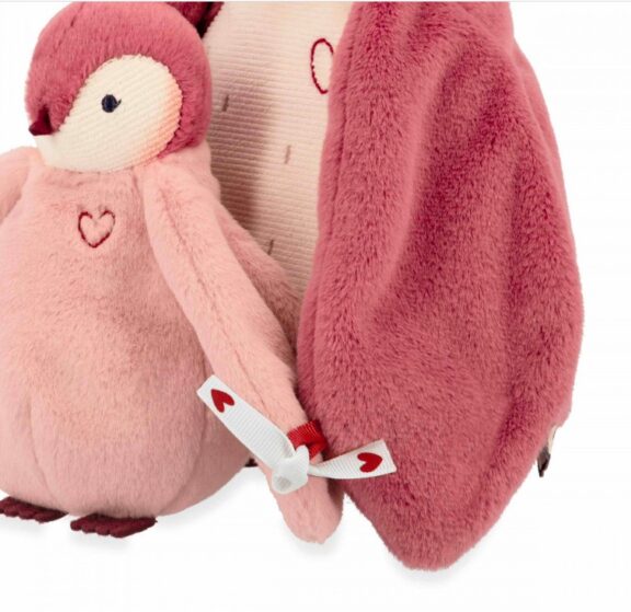 Petit et grand manchot sont (presque) inséparables ! Adaptées dès la naissance, ces peluches manchots ont été conçues pour réconforter et rassurer bébé dans les moments de séparation. Douces et moelleuses, ces peluches roses représentent un parent et son petit, ainsi que le lien si particulier qui les unit. Les ailes du plus grand manchot sont très agréables à câliner et enveloppent le bébé manchot pour le garder tout contre lui. Les rubans ornés d’un petit cœur et présents aux extrémités des ailes permettent de lier les peluches : ils symbolisent la protection et le lien d’attachement entre un parent et son enfant. Cadeau de naissance idéal, ce duo de peluches Kaloo permet de rassurer bébé lorsqu’il est angoissé en l’absence de ses parents. Jolis cœurs et gros câlins sont représentés, pour expliquer aux tout-petits que le lien spécial qui les unit à leur parent est fort et ne disparait pas lorsqu’ils ne sont pas présents avec eux. Pour inviter aux câlins et stimuler les sens de bébé, ces manchots en peluche sont composés de différentes matières (velours côtelé et fourrure synthétique) et proposent des broderies et étiquettes à parcourir du bout des doigts ! On adore plonger ses mains dans leur fourrure et câliner leur ventre rebondi.