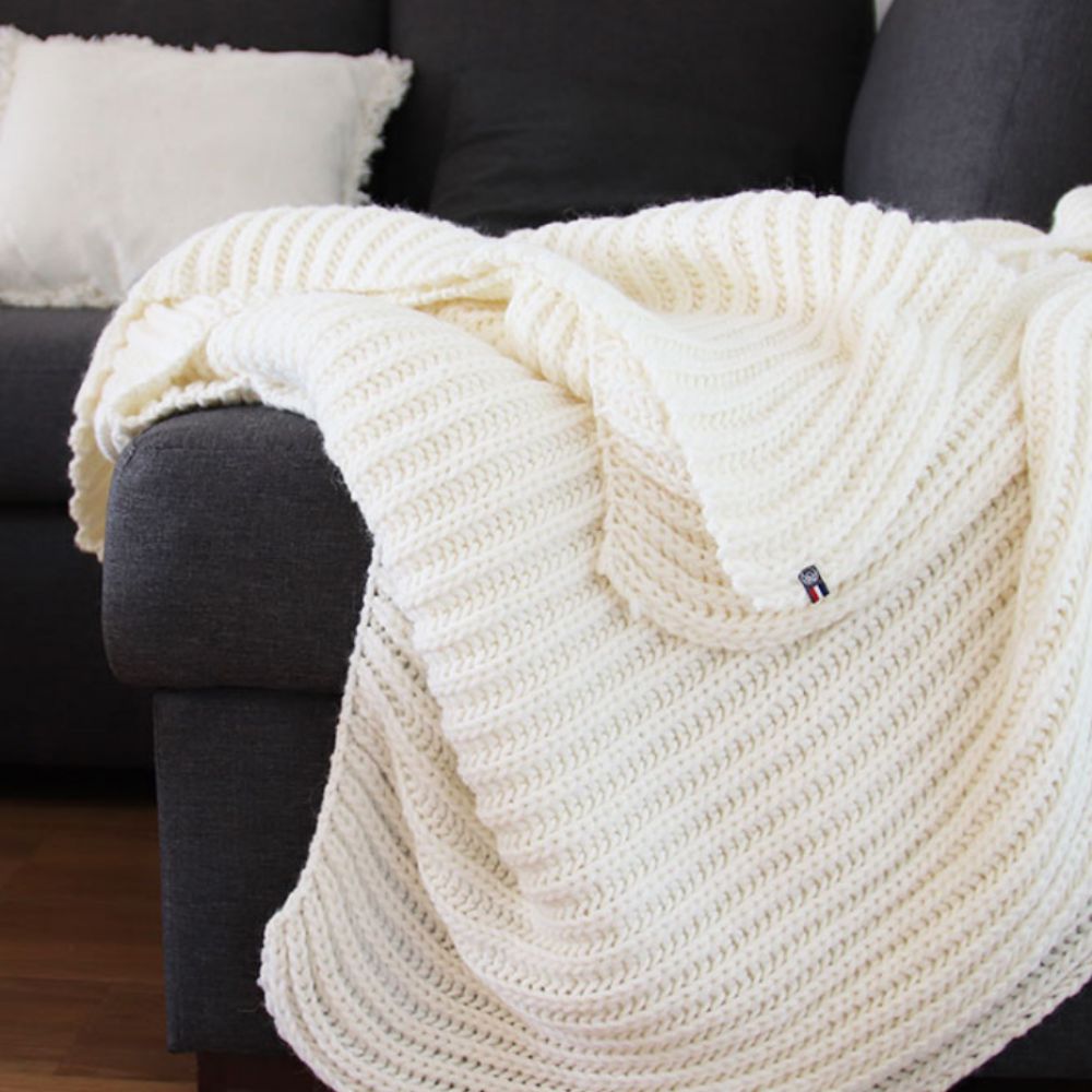 Plaid Cannes Ecru 140x180cm en laine à grosses mailles – Maison Bonnefoy