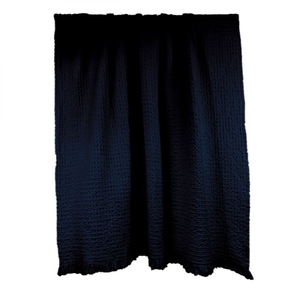 Très beau plaid intemporel en nid d’abeilles, dans le coloris bleu Encre.