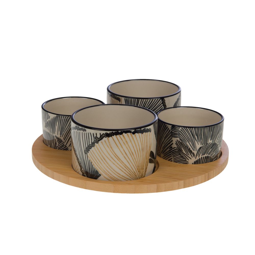 Sublimez vos moments conviviaux avec ce plat apéritif en grès accompagné de 4 bols décorés de motifs élégants. Posé sur un plateau en bois naturel, il apporte une touche chaleureuse et raffinée à votre table. Pratique et esthétique, il invite à partager des saveurs avec style et simplicité.