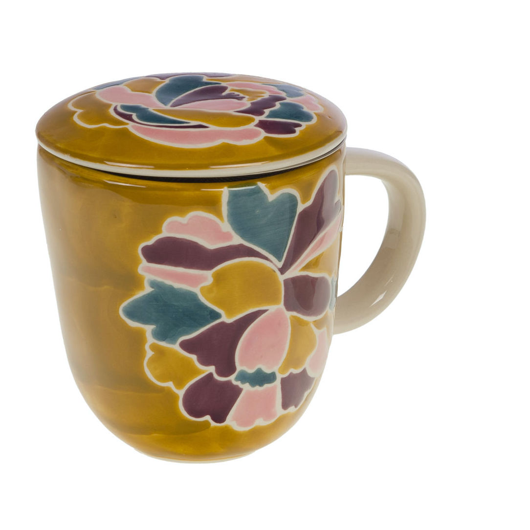 Savourez votre boisson préférée avec ce mug en grès au design floral coloré. Son filtre intégré vous permet de préparer facilement thés ou infusions. Disponible en deux teintes chaleureuses, il apporte une touche artisanale et conviviale à vos pauses gourmandes.